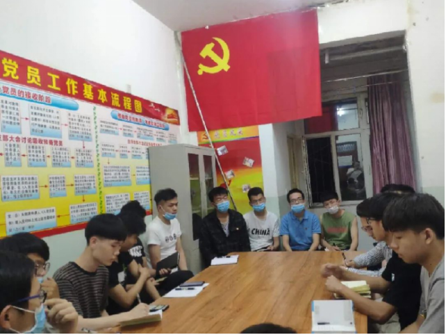学生第一党支部书记刘振老师,学生第一、第二党支部党员参加会议。