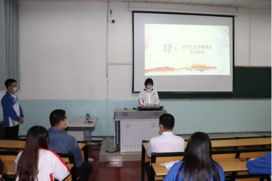 数学M193班梅晓旭作为本次培训班学员代表发言,她说:“作为一名合格的入党积极分子应该不断学习,自我进化,提升自己,在党组织的培养教育下继续努力,向合格的中国共产党党员同志学习,牢记中国共产党的宗旨,积极完成党组织安排的任务,不断提高自己的综合素质。”