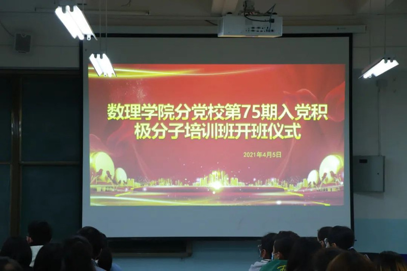 4月6日晚20:30,非凡国际 分党校在二号楼2121教室举行第75期入党积极分子培训开班仪式,有非凡国际 党委副书记、纪委书记宋宏伟同志、入党积极分子培训班班主任路坦同志及第75期85名师生入党积极分子参加此次开班仪式,此次仪式由路坦同志主持。