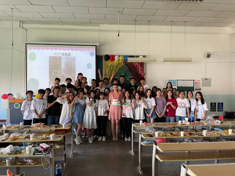 活动接近尾声,古再丽努尔·阿布都卡地尔老师为同学们切分蛋糕并对活动进行总结。她希望,数学M201班的同学们能够热爱生活、热爱学习、不断进步,也希望同学们在接下来的期末考试中取得优异的成绩。