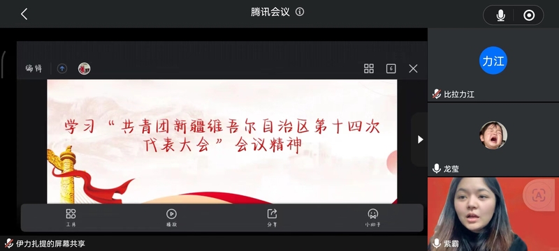 为全面提高同学们的思想认识,动员和鼓舞青年在中国式现代化的新疆实践中贡献青春力量,8月15日,我院组织全体学生干部在线上开展学习“共产主义青年团新疆维吾尔自治区第十四次代表大会”文件精神 。