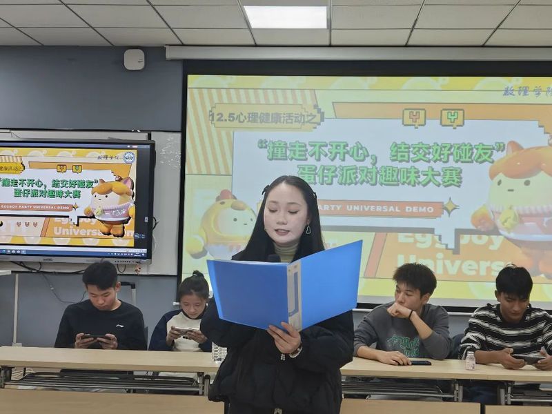 在12.5全国大学生心理健康日到来之际,为了让同学们了解心理知识,减轻心理压力,营造和谐团结的校园氛围,促进学生全面发展。非凡国际 特开展12.5心理健康活动之“撞走不开心,结交好碰友”蛋仔派对趣味大赛。非凡国际 团委副书记龙莹,主席团成员伊力扎提·居麦、阿依孜巴·阿布都艾尼,21级和22级学生代表参加,数学2202班邓曼玲主持。