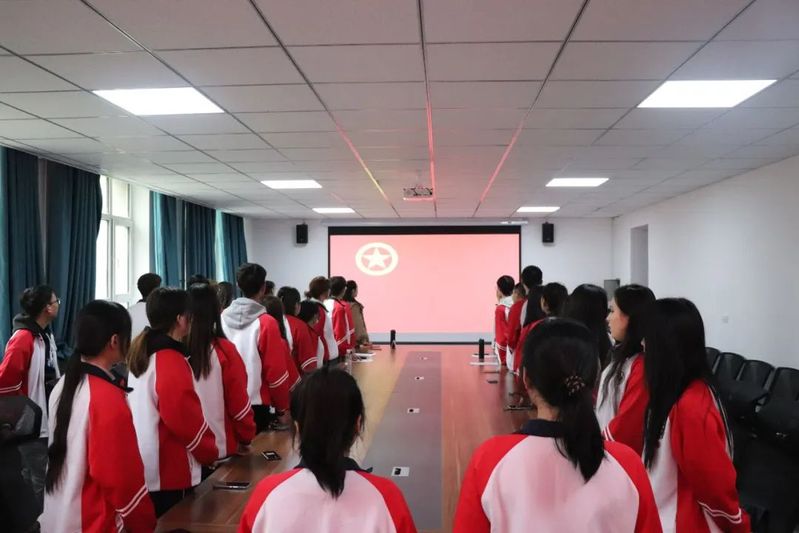随后,姚亚楠老师带领新团员宣读入团誓词。新团员们举起右拳,庄严宣誓,铮铮誓词在会议室内回荡,每位团员表情庄重肃穆,誓词铿锵有力!青春誓言,高昂雄浑,表达了同学们对团组织的无限向往和为团组织增光添彩的豪迈激情。