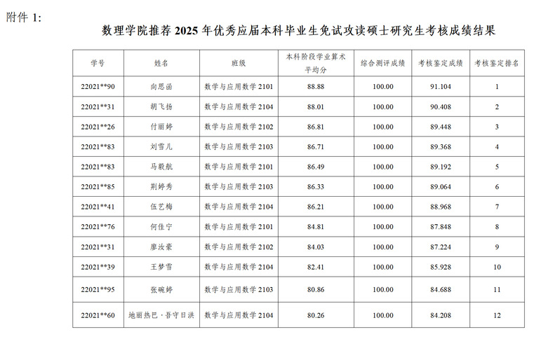 推荐2025年优秀应届本科毕业生免试攻读硕士研究生考核成绩结果.docx