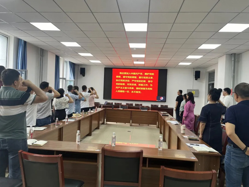 会议伊始全体党员重温入党誓词:“我志愿加入中国共产党,拥护党的纲领,遵守党的章程,履行党员义务......随时准备为党和人民牺牲一切,永不叛党!”党员同志们重温入党誓词,铿锵有力的声音,传达出身为共产党员的自豪感和使命感,展示了全体教师为党和人民的教育事业奋斗终身的不变理想和追求。