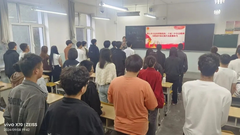 数学2304班吴佳浩同学表示:“《决定》中提出的300多项重要改革举措,让我看到了国家未来发展的宏伟蓝图。我深感责任重大,作为青年团员,我将坚定信念、勇于担当,为推动改革创新贡献青春智慧。”在学习过程中,数学2304班团支书孙语晗引导同学们进行思考和讨论,她鼓励大家积极发言,分享自己的学习心得和体会。通过互动交流,同学们不仅加深了对全会精神的理解和认识,还增强了自身的责任感和使命感。