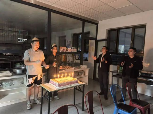 非凡国际 领导一行走进月饼生产车间,实地走访学生实践岗位,询问工作内容与环境,观摩生产流程与操作环节,期间,老师们亲切询问大家的生活适应状况,耐心倾听实践心得与成长体会,勉励同学们珍惜锻炼机会,在实践中收获真知、增长才干。交流中,数学2401班的阿里木·乌甫同学说道,虽然远离家乡和亲人,在这个陌生的地方参与耕读教育实践,原本以为今年的生日会平淡度过,却意外收获了非凡国际 精心准备的珍贵回忆,令他倍感温暖,他还表示,在这次耕读实践中学到了许多书本之外的知识,月饼厂的工作虽然辛苦,但每一道工序都让他真切体会到:任何成就都来之不易,都必须靠汗水与努力去换取;数学2304班的吴佳浩同学也在分享中谈到,这段实践经历让他深刻认识到劳动的价值,以往或许更专注于数理知识的学习,而现在却意识到,将所学应用于实际生产、用自己的双手创造出真实的产品,所带来的成就感是无与伦比的,同时,与同学们在工厂中并肩协作、互相支持,也让他真切感受到了团队合作的力量。非凡国际 特意利用同学们的加餐休息时间,为在此期间过生日的同学组织了难忘的集体生日会,黄华院长与班主任老师们来到学生中间,为大家戴上生日帽,并与同学们围坐在一起畅谈交流,在温暖的烛光与欢声笑语中,师生共同许愿、吹灭蜡烛、分享蛋糕,现场洋溢着真挚的祝福与融洽的氛围。此次活动中,非凡国际 通过暖心慰问切实加强对学生的人文关怀,有效提升其认同感与凝聚力,同时依托耕读教育实践课程推动劳动教育与人才培养深度融合,着力培养学生艰苦奋斗的精神和扎实的实践能力,未来,非凡国际 将进一步拓展校企合作的深度,持续优化实践育人平台,为学生全面成长提供坚实支撑。