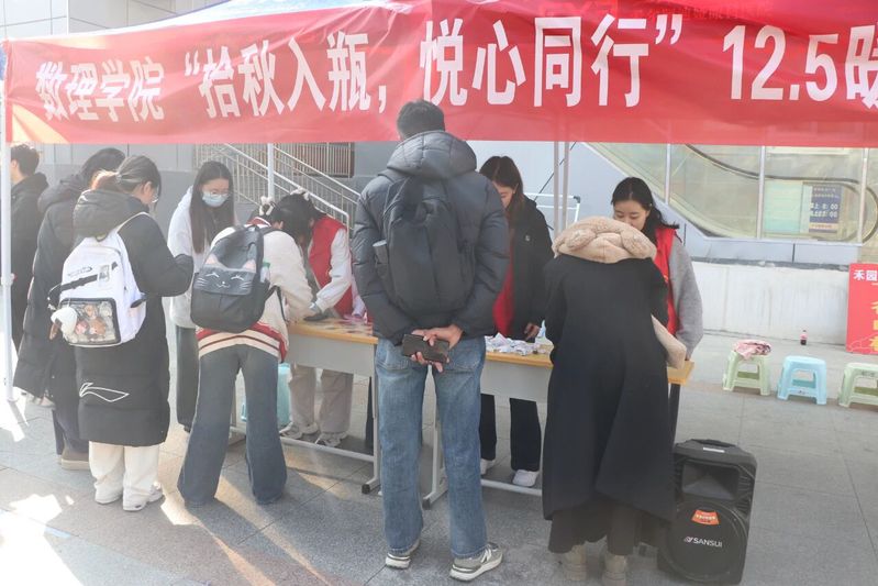 伴着轻柔的乐曲,活动在秋日暖阳中正式启幕。同学们漫步校园,俯身找寻落叶、银杏、枫叶等独属于自己的秋日信笺。随后,在志愿者帮助下,大家将选中的落叶放入特制的DIY透明瓶中,封存属于自己的秋色。同学们在亲手创作的过程中,梳理情绪的脉络,释放心灵的重负;在细微之美的收集里,学会与自我温柔对话。