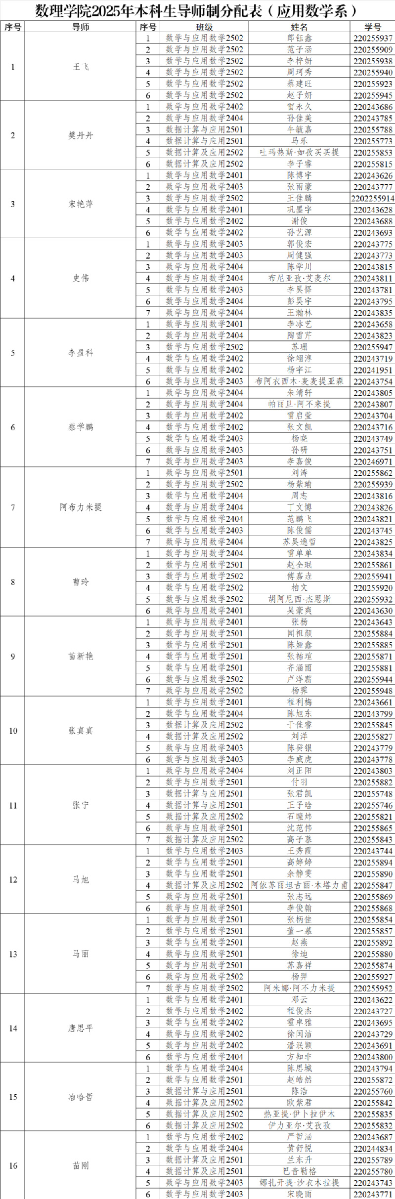 本科生导师制名单予以公布