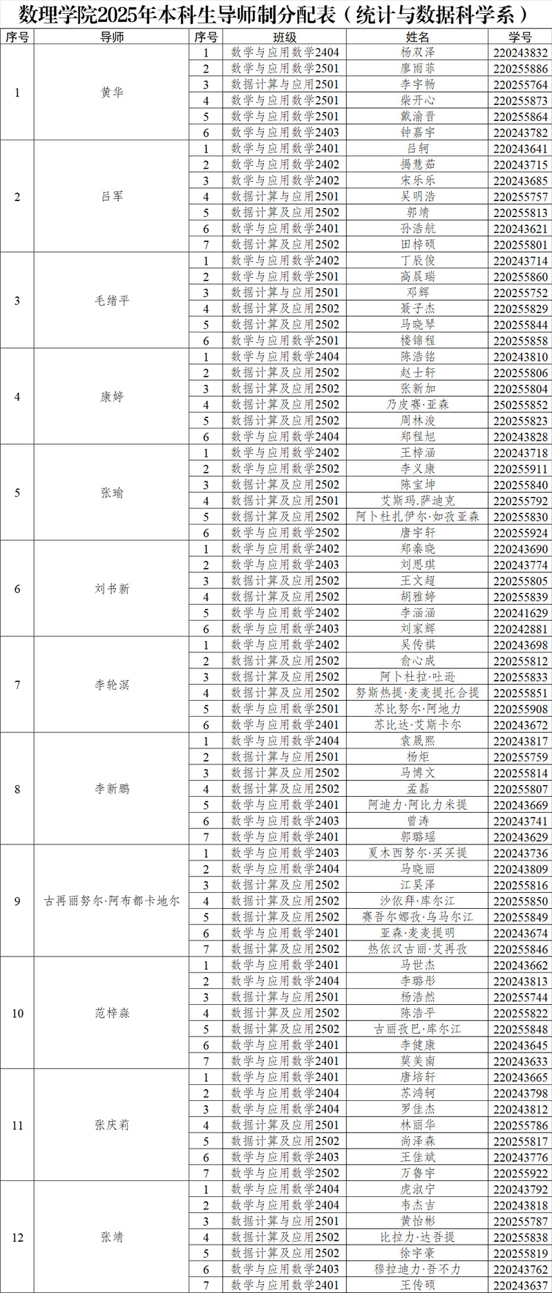 本科生导师制名单予以公布